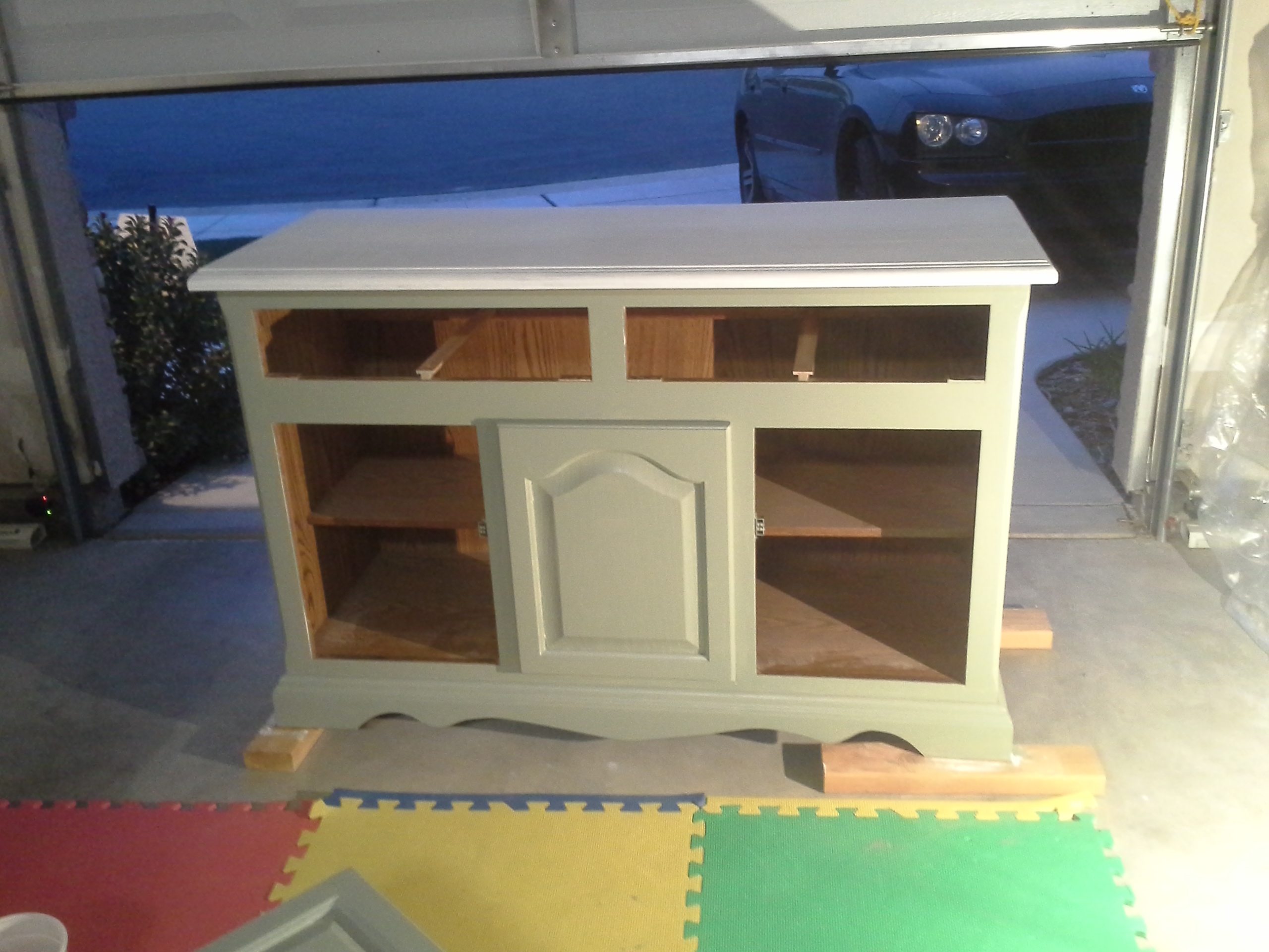 1. Looks great! I refinished a buffet for our new place, and since I’m not a fan of sanding, I used chaulk paint from Annie Sloan. The paint is expensive (35 per quart), but it goes a LONG way (I did 2 coats and only used about half a quart) and I didn’t have to sand or prime. The only caveat is that you are not able to achieve a high gloss finish. It made me look good, and I decidedly NOT crafty! 🙂
